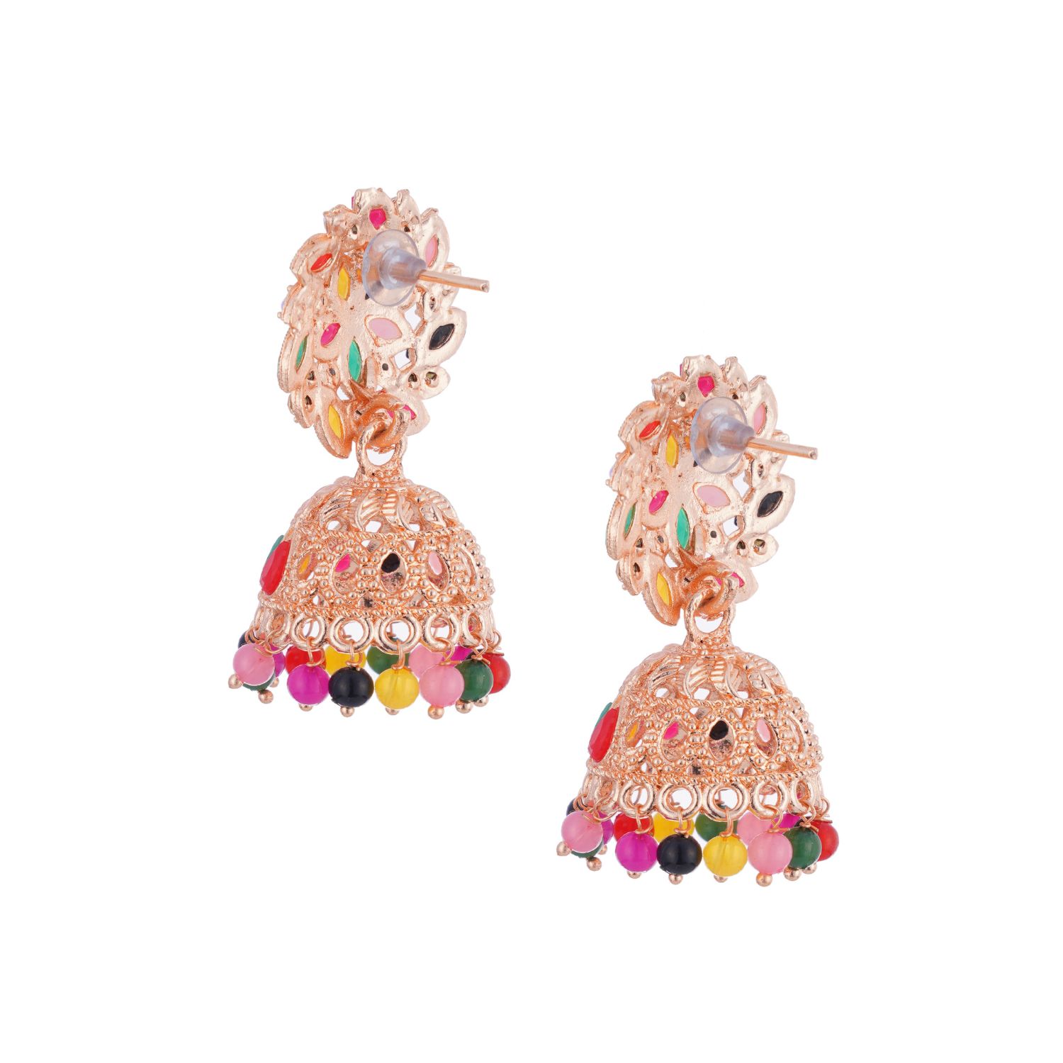Traditional multicolor jhumka earrings with kundan-inspired detailing