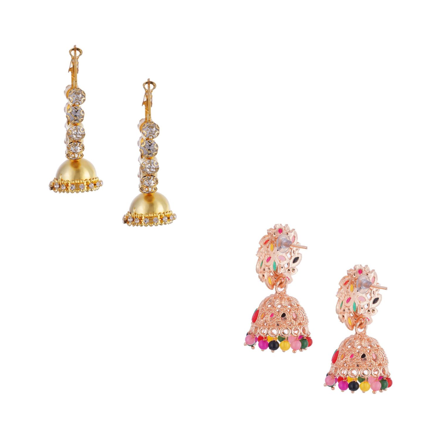 Elegant Ethnic Jhumka Earring Combo Set – Traditional Gold & Multicolor Crystal Earrings for Women and Girls: