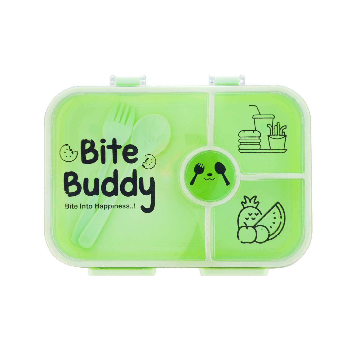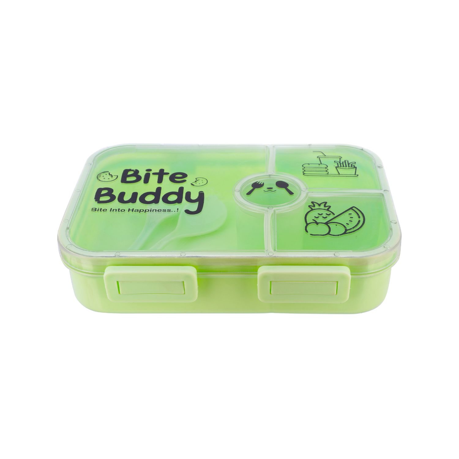 Crafted from high-quality, BPA-free, food-grade plastic, this lunch box is safe, durable, and ideal for daily use. Its charming and playful design, featuring cute illustrations inside the transparent lid, makes mealtime enjoyable and interactive for kids. The bright green color is appealing and gender-neutral, perfect for both boys and girls.