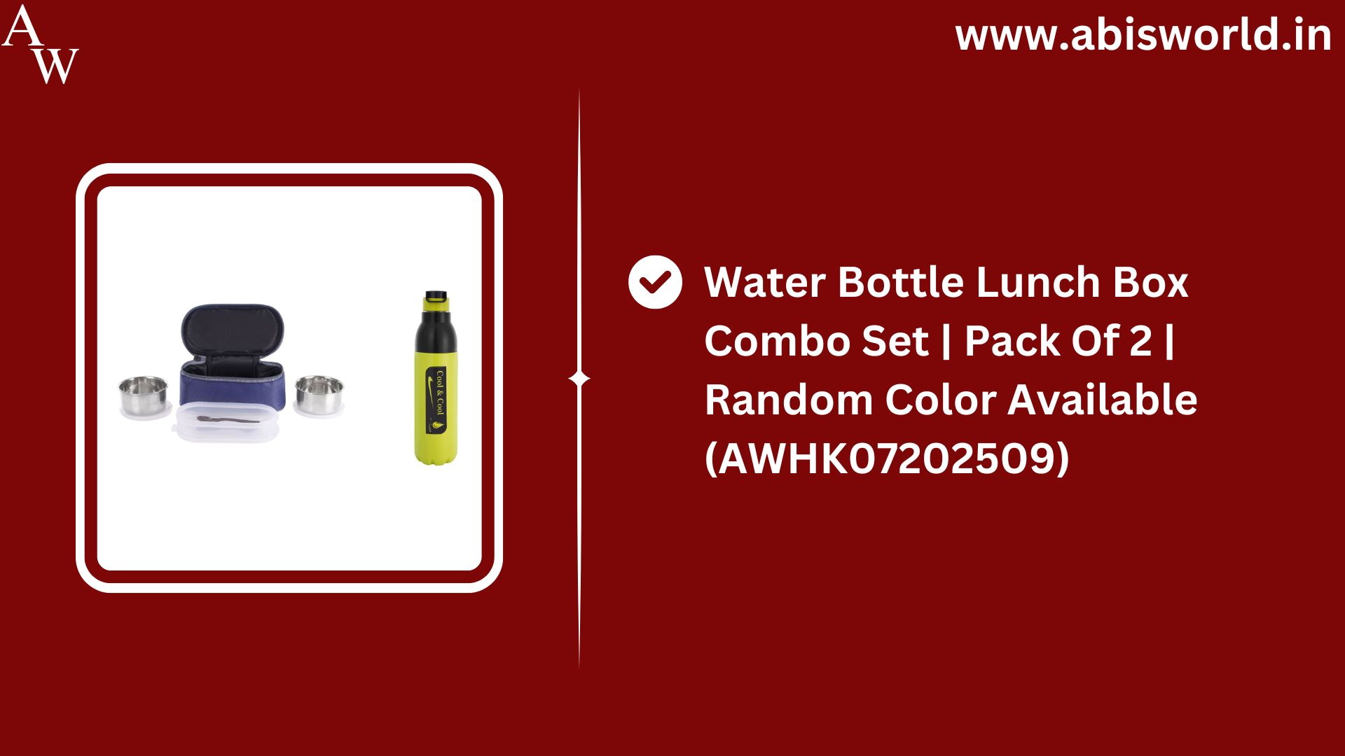 Lunch Box Water Bottle Combo Set | Pack Of 2 | Random Color Available (AWHK07202509)