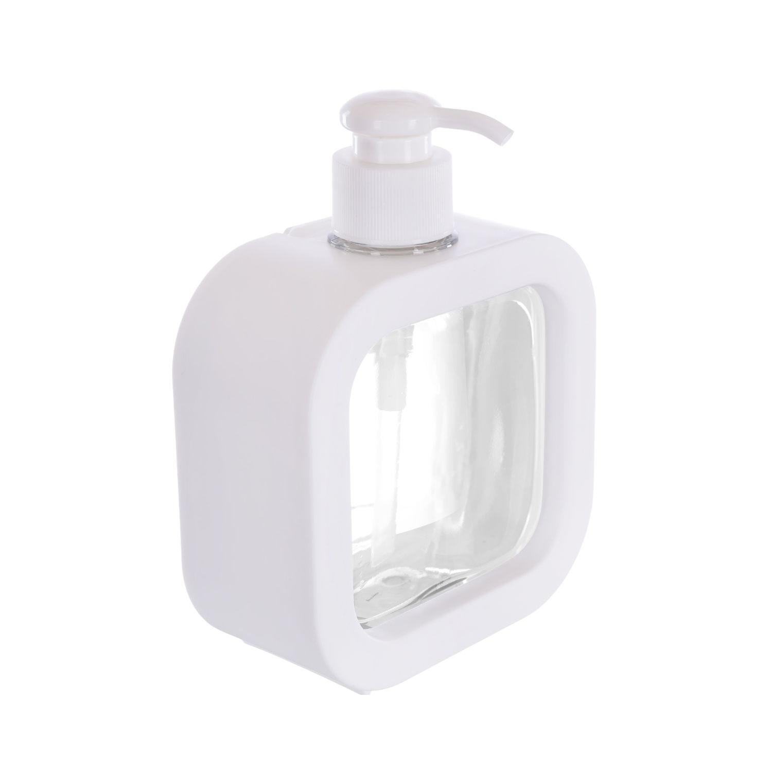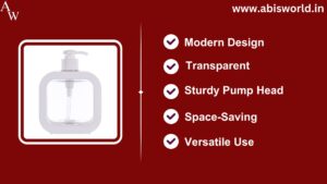 Minimalist square soap dispenser with transparent body and durable white pump. Ideal for bathrooms, kitchens, and offices. Stylish, modern design with easy refill feature. Eco-friendly and Durable.